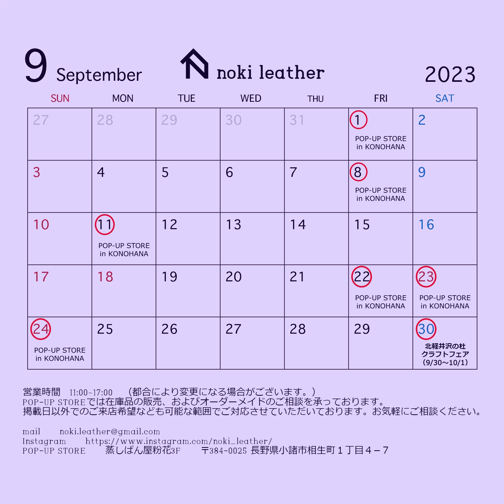 ※蒸しぱん屋粉花様の営業日とnoki leather POP-UP STOREの営業日は異なります。